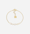 Bracelet maille gourmette ALBERTA en acier doré à l'or fin par ionisation sur lequel sont disposés trois brillants ovales. Longueur : 46cm + 5cm de rallonge.