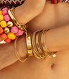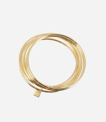 Bracelets joncs par 7 appelé également semainier, en acier doré à l'or fin par ionisation. A porter seul ou en accumulation. Epaisseur 2mm. Diamètre 60mm. Livré dans son pochon et sac de la marque zag bijoux.
