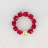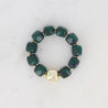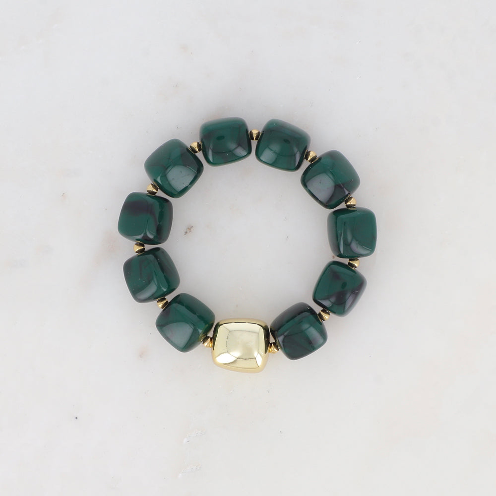 Bracelet élastique orné de perles en résine et d'une perle métallique.