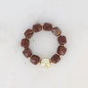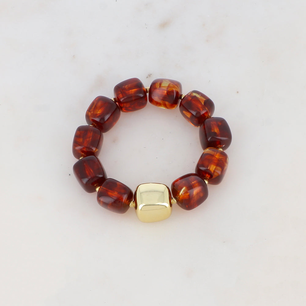 Bracelet élastique orné de perles en résine et d'une perle métallique.
