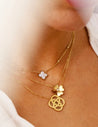 Collier RACINE en acier doré serti d'un pendentif en forme de lotus en nacre, représentant le Chakra Racine. L'inscription "Chakra Muladhara" est écrite au dos du collier. Longueur: 38 + 5cm de rallonge. Acier inoxydable et chirurgicale. Résiste à l'eau. Livré avec son pochon et sac de la marque zag bijoux.