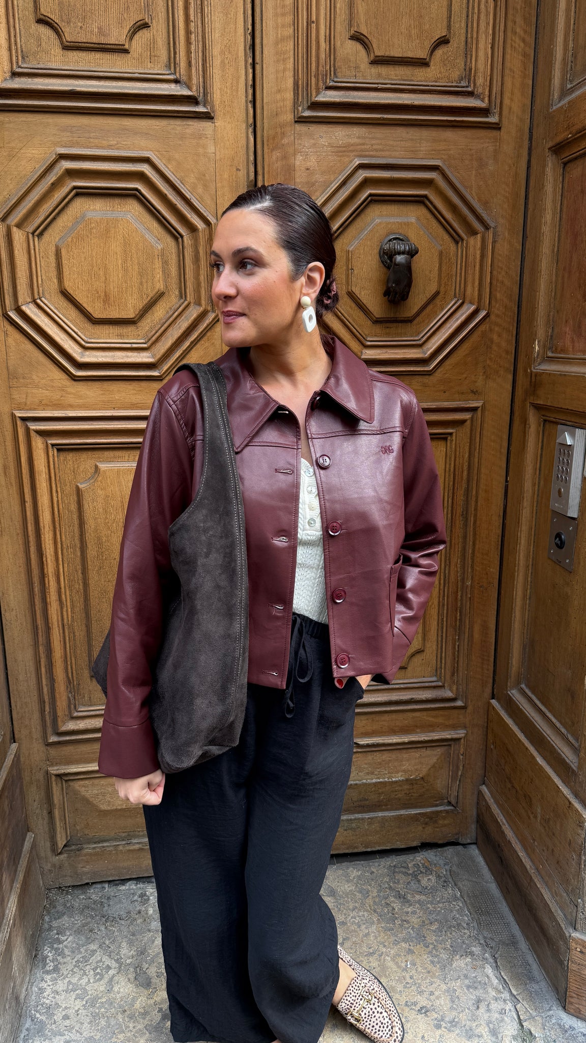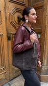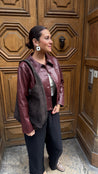 Sac en Cuir véritable effet peau croute de cuir, coloris chocolat avec surpiqûres, fermeture éclair et anse sur l’épaule, dimensions : 33x32x17cm