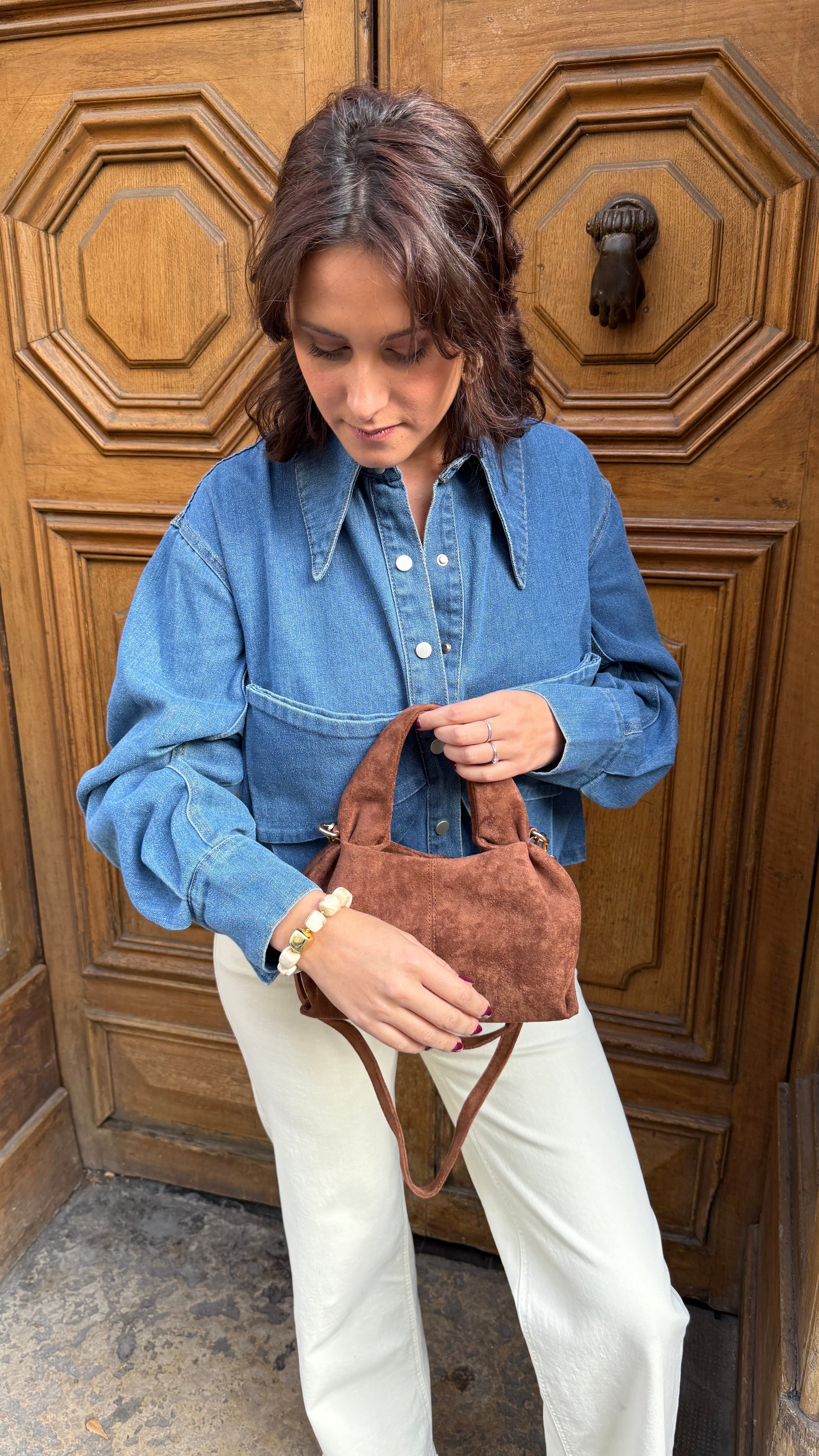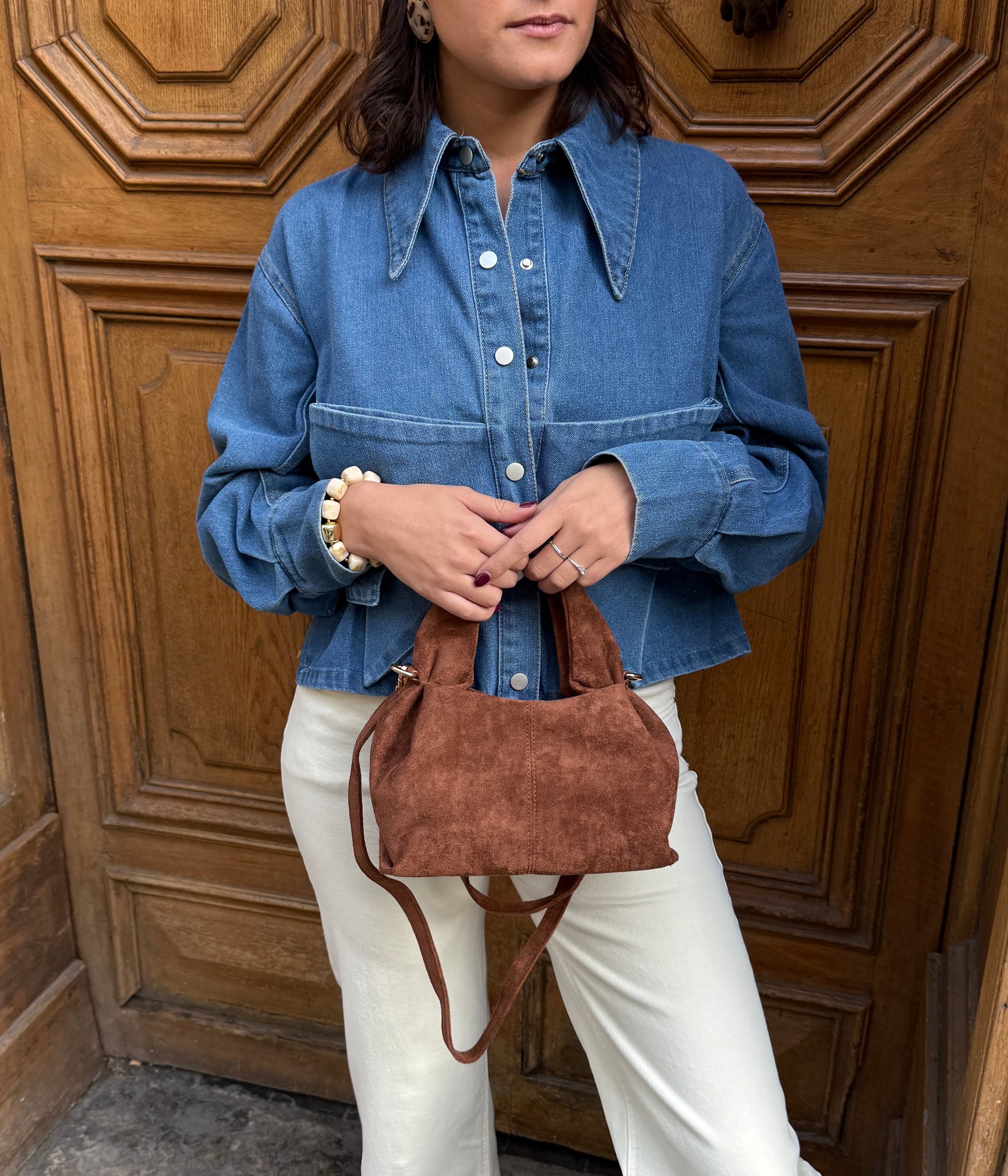 Sac à bandoulière amovible coloris marron clair, touché faim. Très tendance ce joli sac vous accompagnera au quotidien.